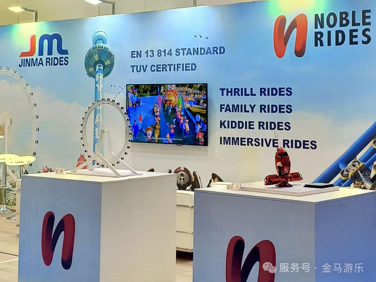 展臺(tái)現(xiàn)場(chǎng),金馬游樂及旗下瑞士子公司Noble Rides的多款創(chuàng)新產(chǎn)品成為全場(chǎng)焦點(diǎn):為德國(guó)客戶量身打造的移動(dòng)懸掛過山車、符合國(guó)際安全標(biāo)準(zhǔn)的全景大橋廂摩天輪、面向家庭游樂市場(chǎng)的機(jī)甲互動(dòng)系列等,吸引了大量專業(yè)觀眾駐足體驗(yàn)。值得一提的是,金馬游樂在歐洲的首套過山車項(xiàng)目計(jì)劃于2026年完成交付。